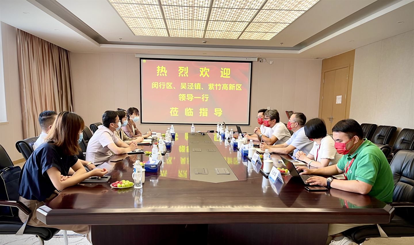 7月22日上午,闵行区委常委、组织部部长胡芳,吴泾镇副镇长李君遐等领导在紫竹高新区党委副书记钱明华陪同下,莅临新华科技走访指导。