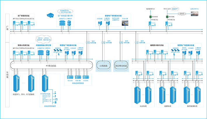 智能控制解决方案以智能化DCS为基础,融合数据分析、先进控制、人工智能等技术,采用智能检测、智能控制、高效运行等策略一体化软件实现火电厂高度自动。
