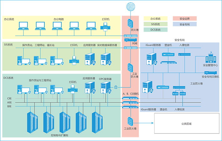 信息安全决解方案严格遵循电力系统“安全分区、网络专用、横向隔离、纵向认证”的安全防护总体原则,通过多种技术手段,确保控制系统产品满足等保三级防护要求。